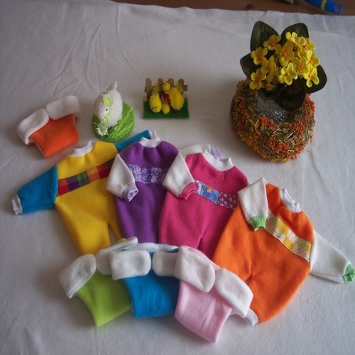 Dupačky s plenkou pro panenky v několika velikostech a barevném ladění.použitý materiál-flauš s aplikací.