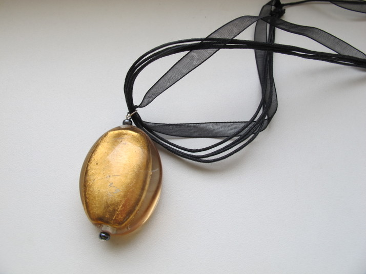 Náhrdelník černá stužka a zlatý kámen