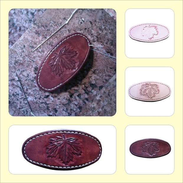 Ručně šitá spona do vlasů z kůže