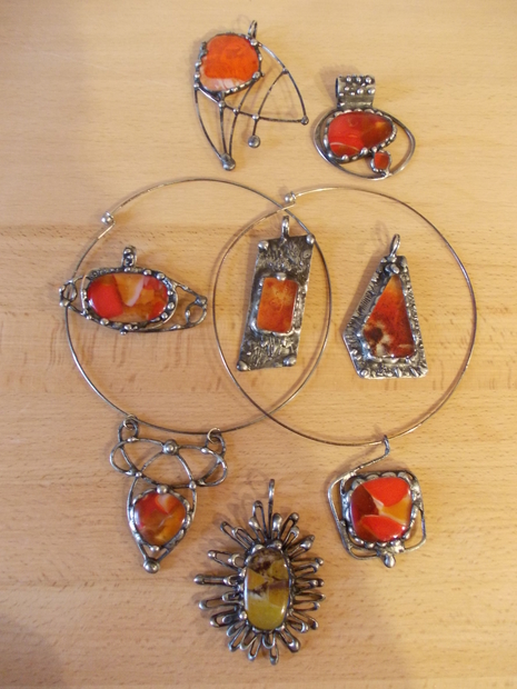Šperky vyrobené pro libereckou galerii Studna ze sklíček od Jar23 a Skláře z Vysočiny, kterým tímto velice děkuji.