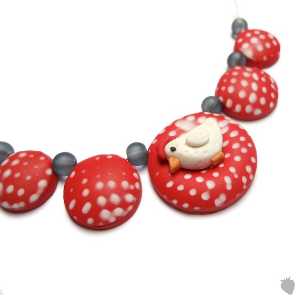 Náhrdelník se slepičkou vyrobený z fima.