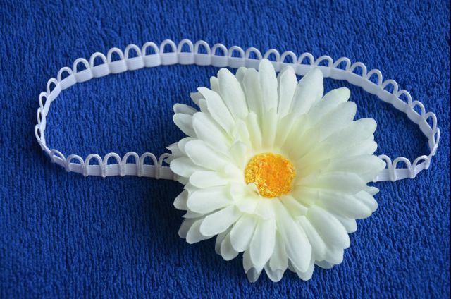 krásná velká kopretinková čelenka na ozdobné pružné gumce