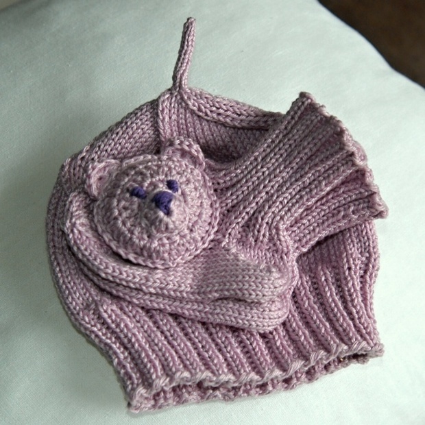 Bavlněná čepička a ponožky pro miminko ve světle fialové barvě. (Barva je ve skutečnosti ještě trochu světlejší (viz. fotka miminka se zelenou dekou). Pleteno na pěti jehlicích, takže beze švů, které by mohly miminko případně tlačit.