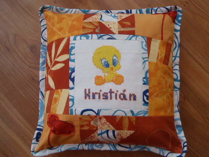 Jeden z mých výrobků na ukázku, s vyšitým jménem.