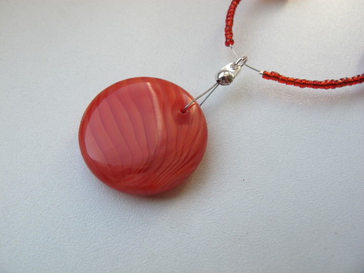 Náhrdelník na lanku s oranžovými skleněnými korálky