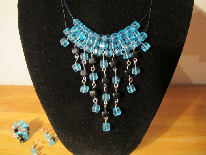 Náhrdelník z tyrkysových kostiček s naušnicemi a prstýnkem