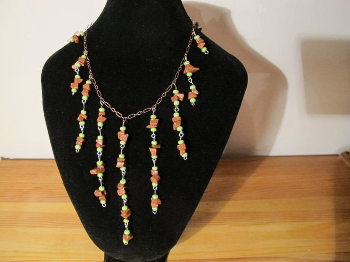Náhrdelník na řetízku barvy mědi s hnědými kamínky