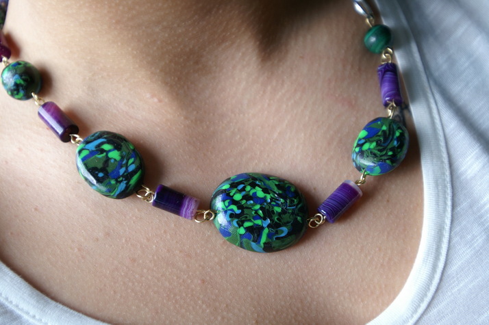 imitace tyrkysu společně s fialovým achátem