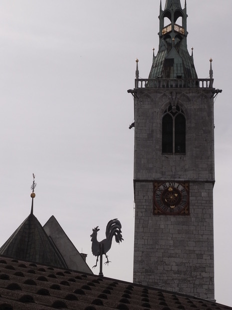 Můj větrný kohoutek v pozadí s hlavní věží kostela ve Schwazu