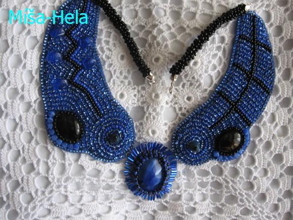 náhrdelník trojí ispirace, použito dva druhy stehů, kabošón od prodejce zde na fléru
