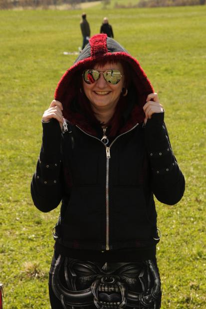 Markétka v RARA zimní bundě s čírem a RARA DIY sukni Motorhead