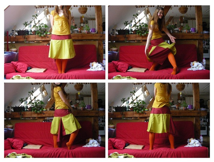 Moje vůbec první naostro spíchnutá barevná suknička :)