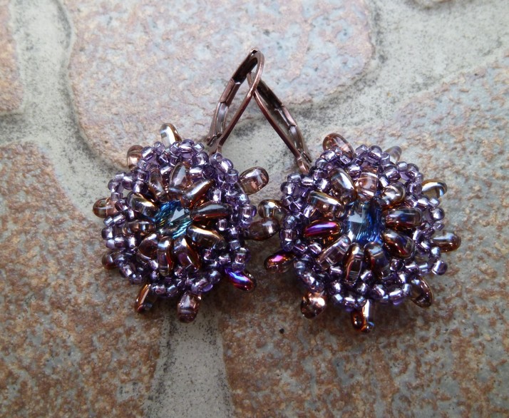 Swarovski buttons obšité japonským rokajlem Toho a Twin Preciosa...mechanické háčky v barvě mědi