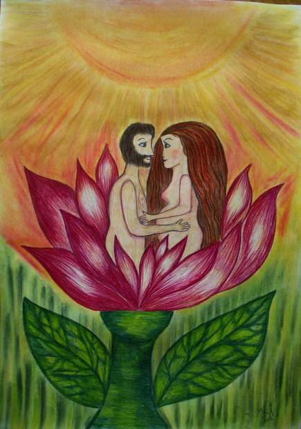 Kresba na formát A2, pastelky a suché pastely, fixováno lakem.