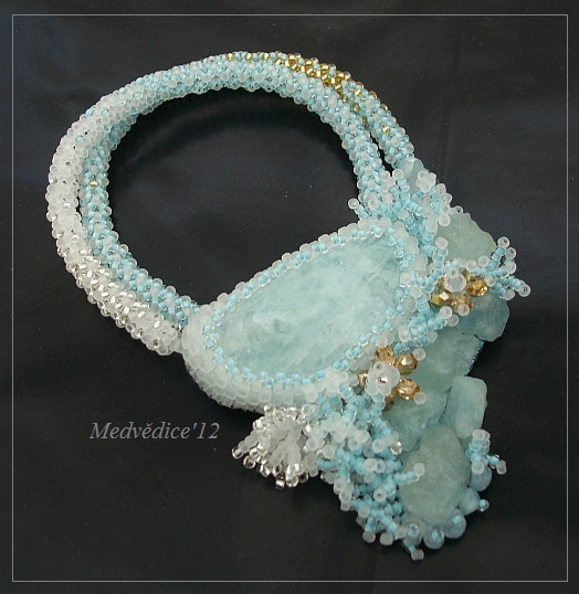 spousta akvamarínu, český a japonský rokajl, ohňovky