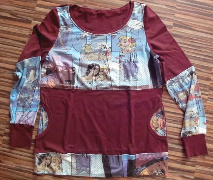 Opět tričko ze zbytků úpletů. Tričko má tentorkáte 2 kapsy a dlouhý rukáv....hodí se na toto počasí. :o))))