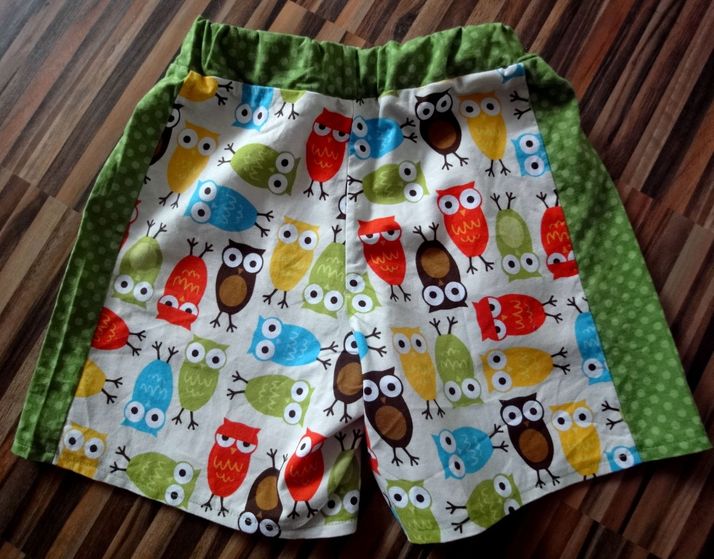 Z krásných látek od Melluzínky jsem ušila cvrčkům kraťasy...nakombinované s krásnou puňtikatou látečkou.