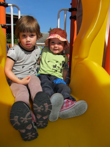 Bája a tričenko od majerKy a Elenka v džínách a tričenku od majerKy