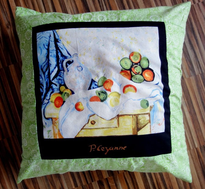 Našla jsem nádherný panel látky s 8 obrazy impresionistů...neodolala jsem a ušila z nich polštářky o rozměrech 45x45 cm v různých barevných kombinacích.