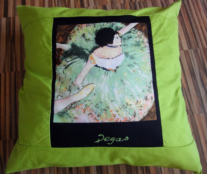 Našla jsem nádherný panel látky s 8 obrazy impresionistů...neodolala jsem a ušila z nich polštářky o rozměrech 45x45 cm v různých barevných kombinacích.