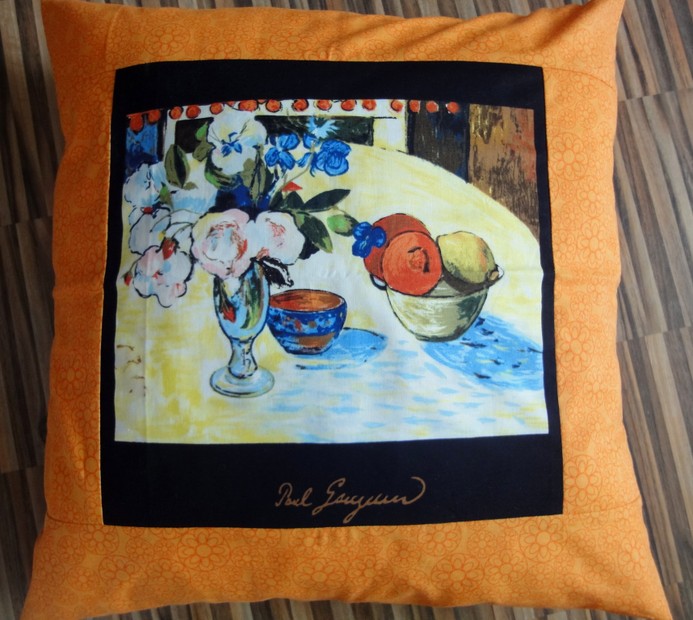 Našla jsem nádherný panel látky s 8 obrazy impresionistů...neodolala jsem a ušila z nich polštářky o rozměrech 45x45 cm v různých barevných kombinacích.