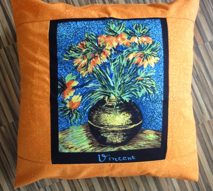 Našla jsem nádherný panel látky s 8 obrazy impresionistů...neodolala jsem a ušila z nich polštářky o rozměrech 45x45 cm v různých barevných kombinacích.