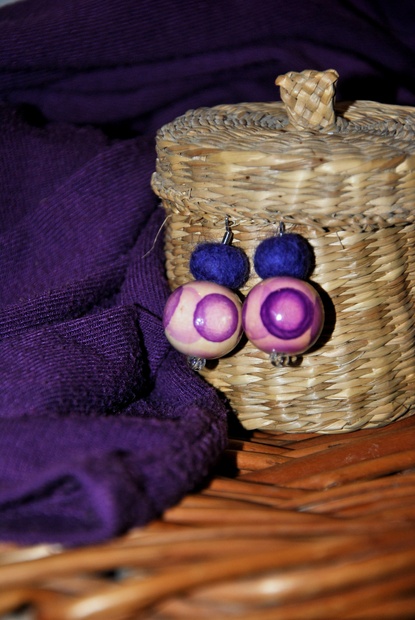 fialová kombinace dřevěných korálků a ovčího rouna