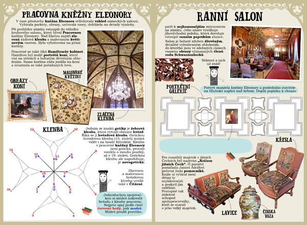 * Zprostředkovává nejdůležitější informace o historii, výrazných osobnostech, exteriér, interiér i okolí památky atraktivní, přehlednou a graficky poutavou formou.