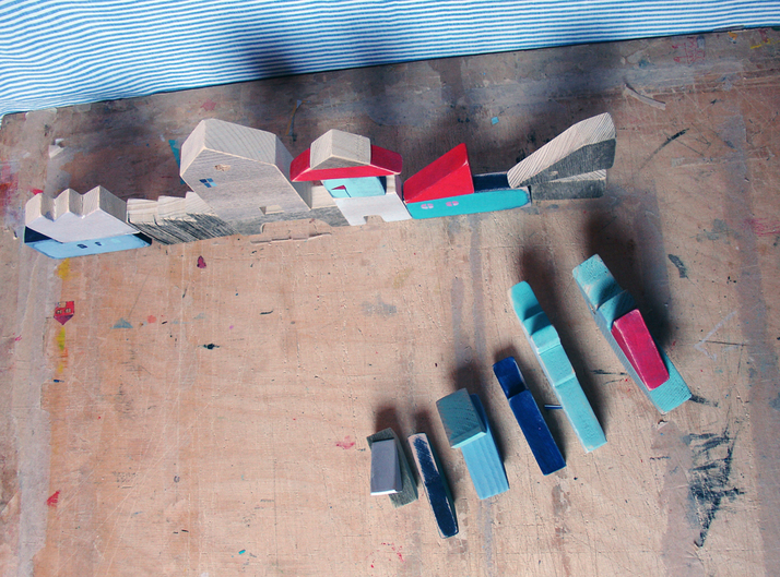Skládačka, hlavolam, stavebnice...obsahuje 22 dílů (domy, lodě, jednoduché tvary), které lze skládat a rozkládat dle libosti do různých variant.