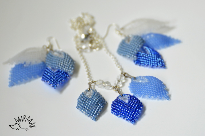 Lístkové náušnice v odstínech modré a náhrdelník s možnost výměny lístků dle nálady :)