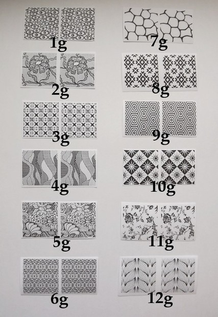 Vzory jsou ve skutečnosti tmavší barvy, zesvětlené jsou fotografie z důvodů padělku.