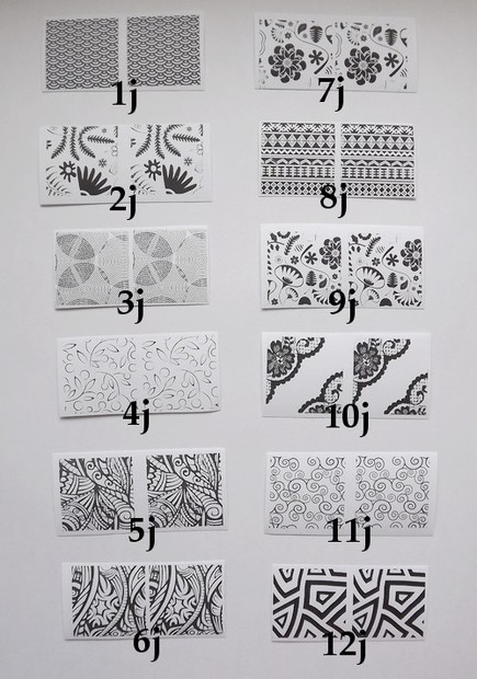 Vzory jsou ve skutečnosti tmavší barvy, zesvětlené jsou fotografie z důvodů padělku.