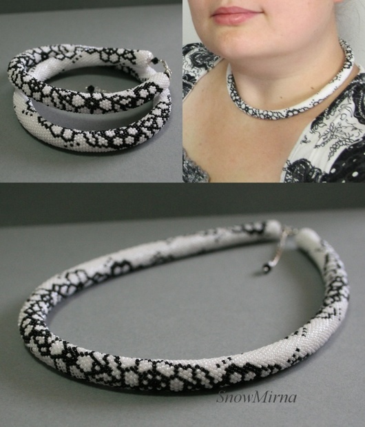 Tento krasny a jemny nahrdelnik je udelan velmi narocnou technikou hackovani s koralky.