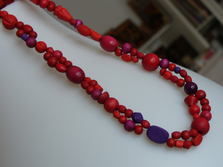náhrdelník z dřevěných korálků (52 cm) navlečených na dvou splétaných lankách