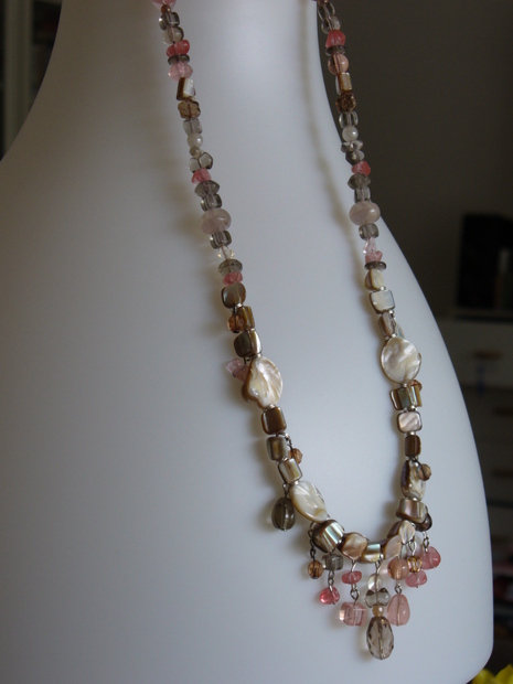 náhrdelník z perleti, skleněných korálků, polodrahokamů