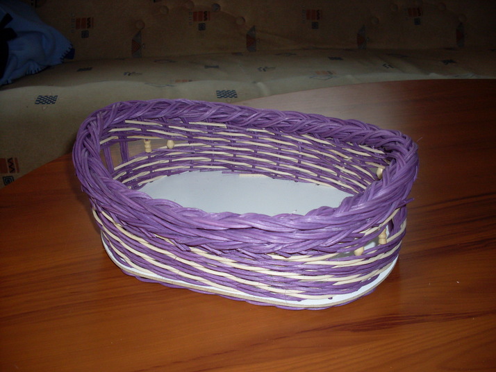 Fialový košíček na pečivo,nebo na přenášení pití. pr. 17 x 24 cm