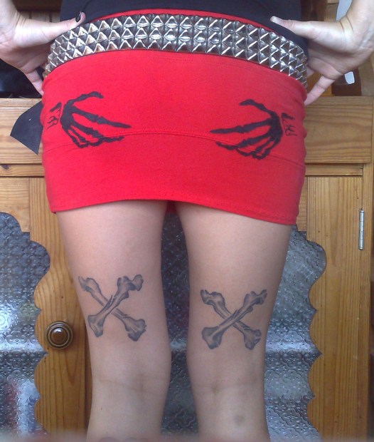 sukně s potiskem na zadní straně skeleton hand + potisk zepředu