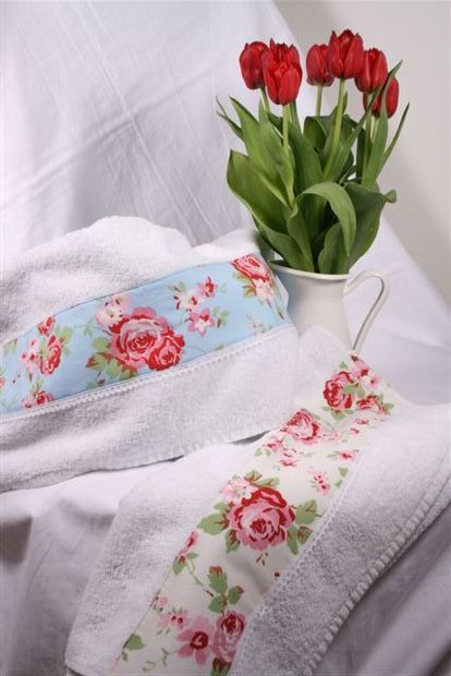 Jen tak pro radost jsem všila na ručník svoji oblíbenou látku Rosali a dozdobila kraječkou.