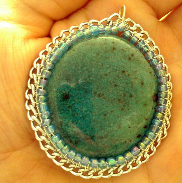 keramický kabošon, drátek, řetízek a skleněný rokajl