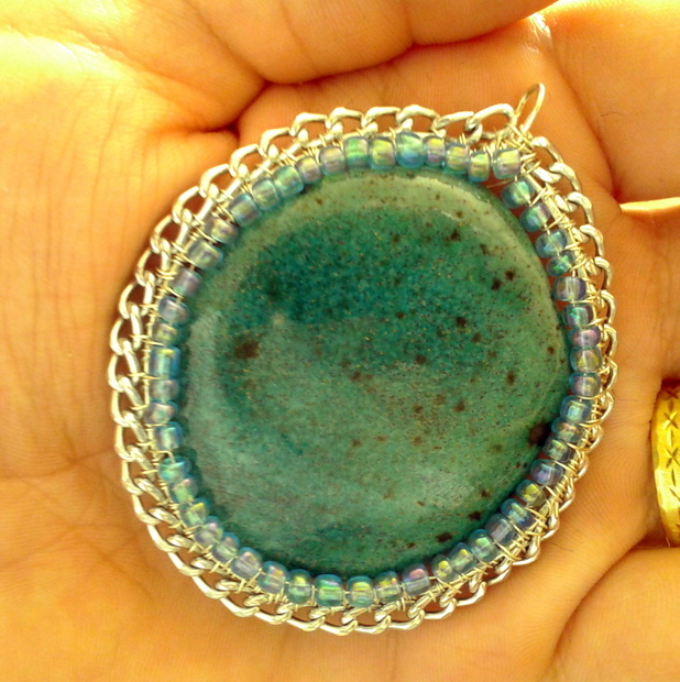 keramický kabošon, drátek, řetízek a skleněný rokajl