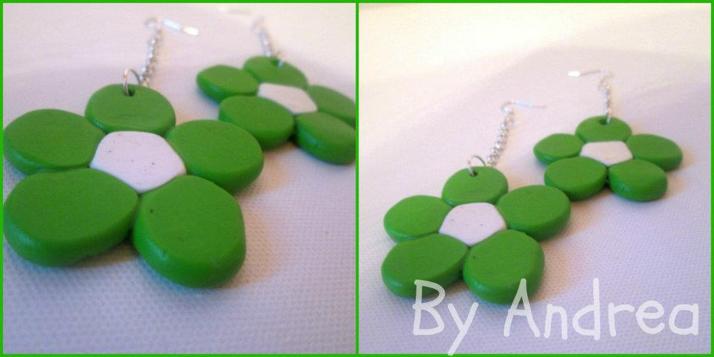 náušnice vyrobené z fimo hmoty,doplnené postriebrenou retiazkou