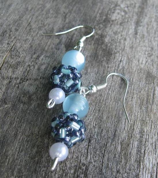 Modré náušnice s šitým korálkem