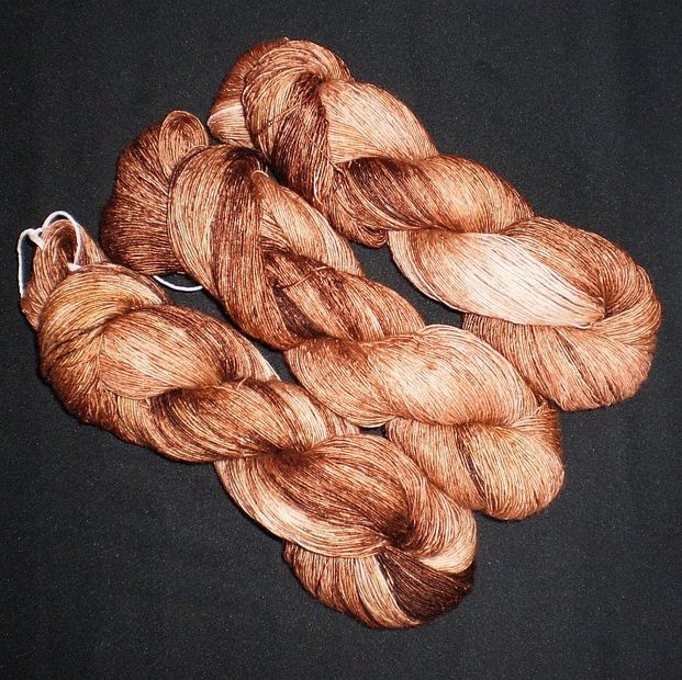 70% merino extra fine, 30% hedvábí, 600m/100g, ručně barveno.