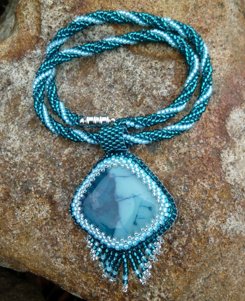 Obšitý na plsti rokajlem Toho round, herringbone spirála