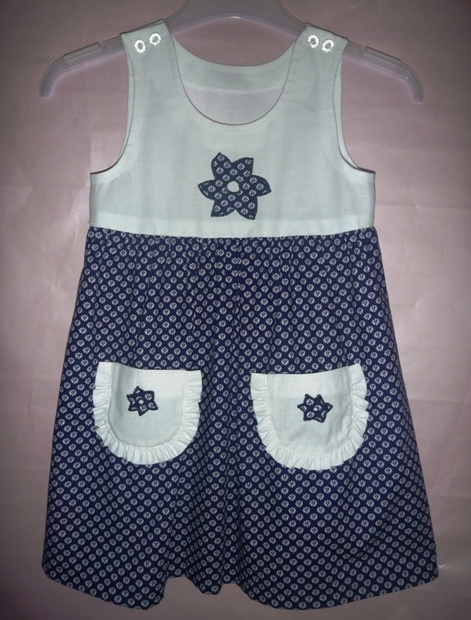 Modrobílé šaty vhodné i jako zástěrka s kapsičkami velikosti 116 ze 100% bavlny.