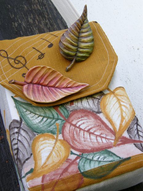 Taška na zpěvníky vyrobená na téma : Hudba mého srdce ♥ :) s ozdobnými vyřezávanými brožemi