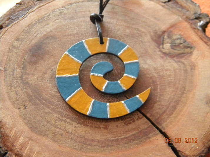 Přívěšek na krk je vyroben z překližky.Malovaný temperami a přelakovaný..