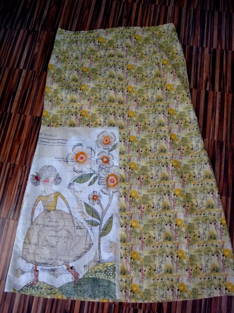 Jemně kreslená látka s velmi krásnými vzory se mi prostě hodila na sukni dlouhou až ke kotníkům.