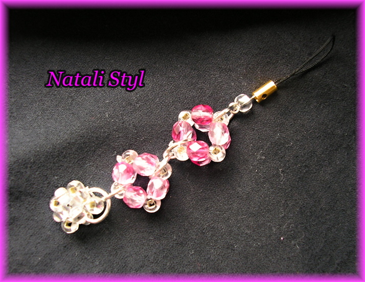 Přívěšek na mobil je z kuliček z korálků,navlečených na silonové lanka.Spojené kolečkama..lehké a krásné
