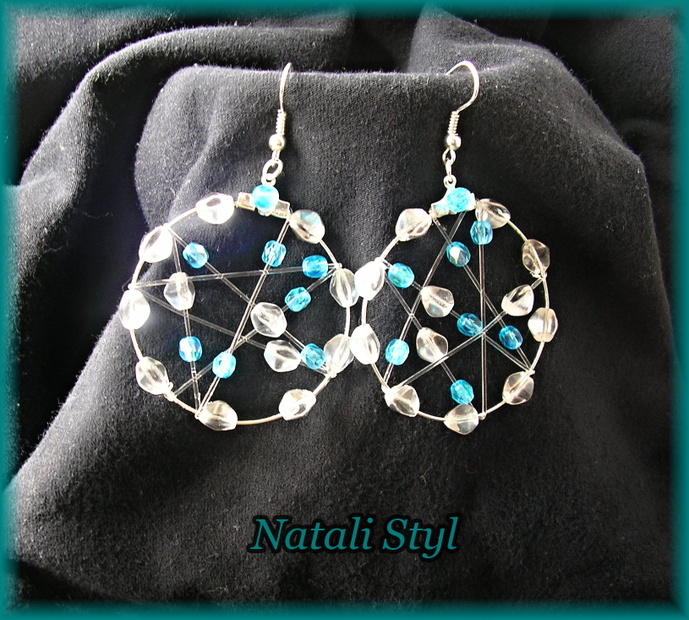 krásné tyrkysové náušnice..kruhy s tyrkys a průhledné korálky..100,-